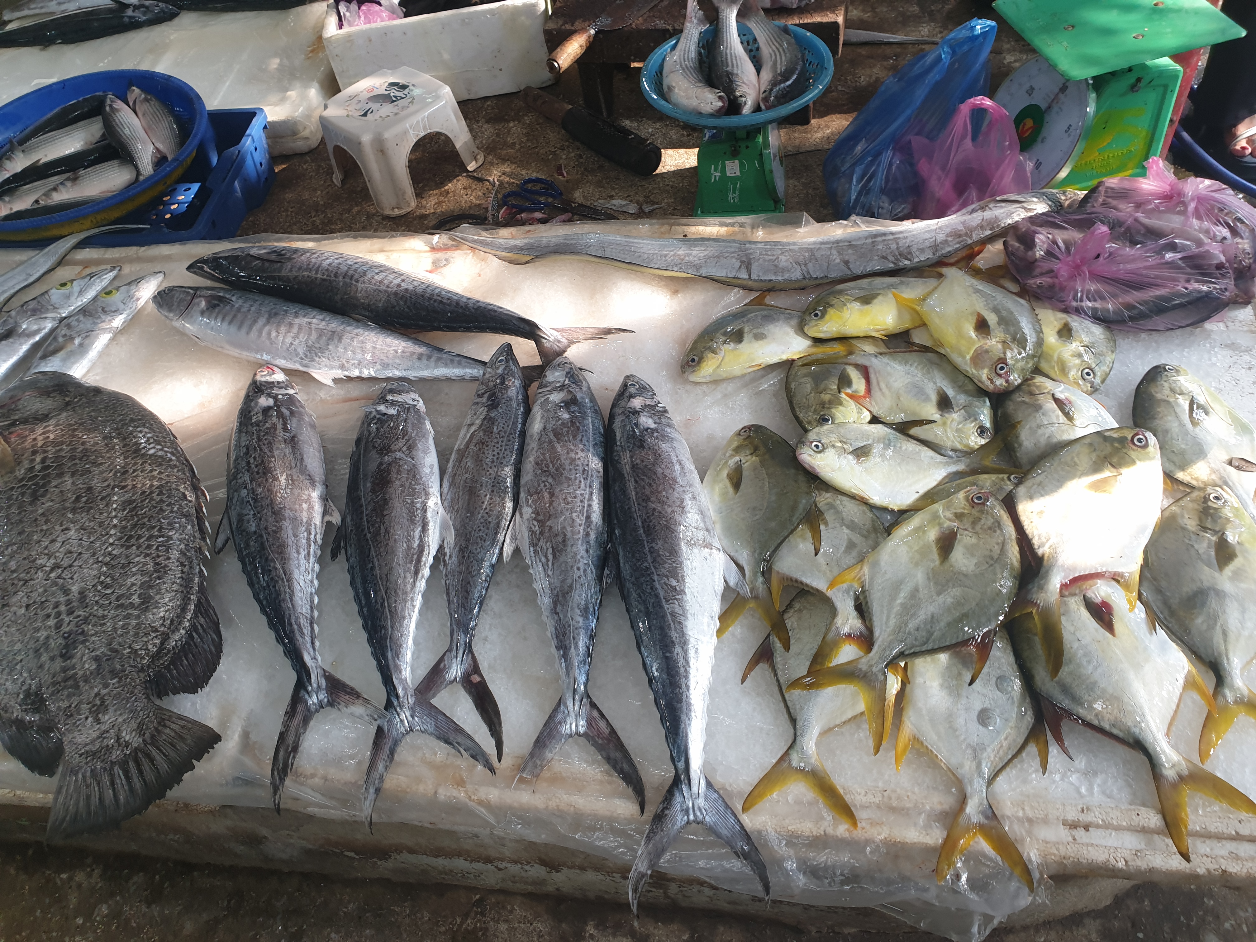 Description automatically generatedA group of fish on a table