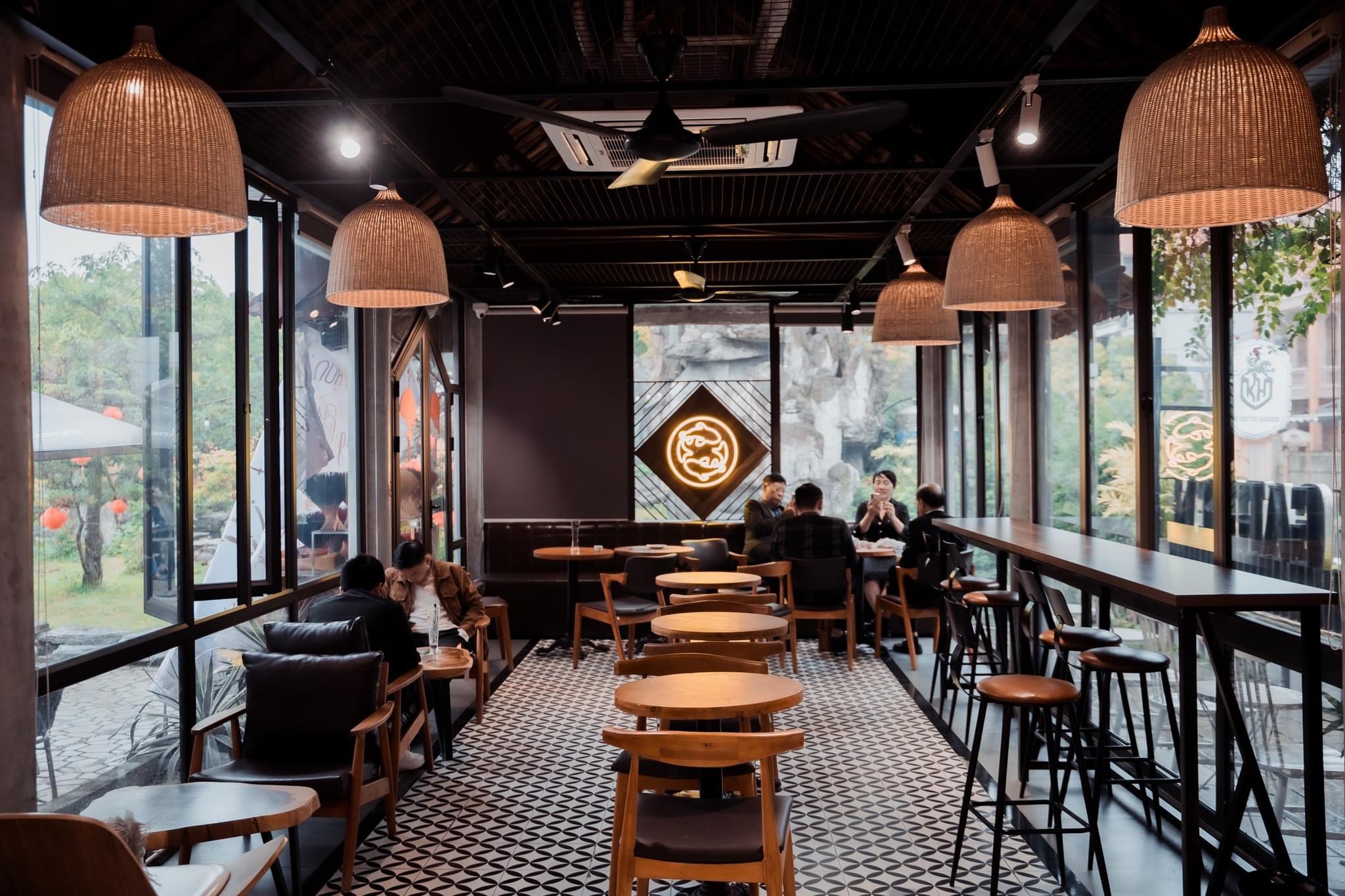 KH Coffee Garden được thiết kế theo phong cách sân vườn, mang đến cảm giác thư giãn giữa không gian xanh mát. Những hàng cây, tiểu cảnh, và lối đi được bố trí hài hòa, tạo nên một không gian yên bình, thoát khỏi sự ồn ào của phố thị. Nhà hàng có cả khu vực trong nhà và ngoài trời, phù hợp cho mọi dịp từ hẹn hò, họp mặt bạn bè đến tổ chức sự kiện, tiệc sinh nhật.